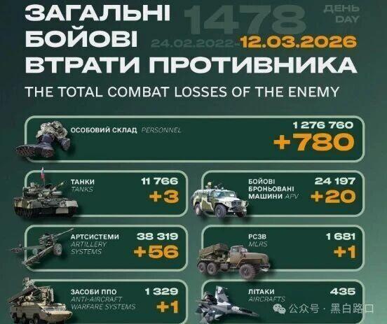今天是俄乌战争第1478天(2026年3月12日),过去24小时大事件概述如下: